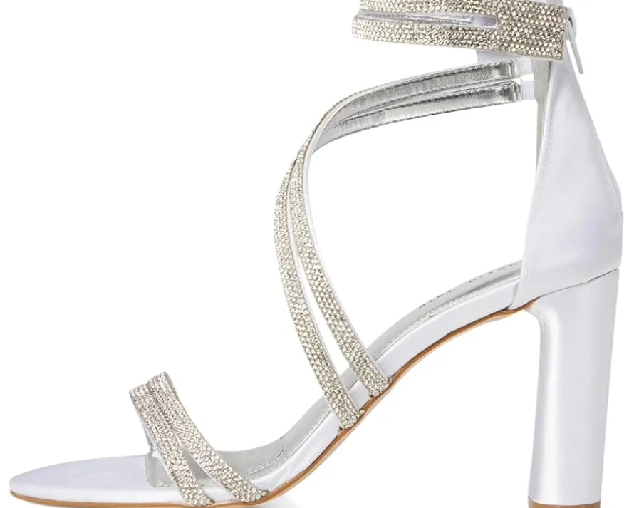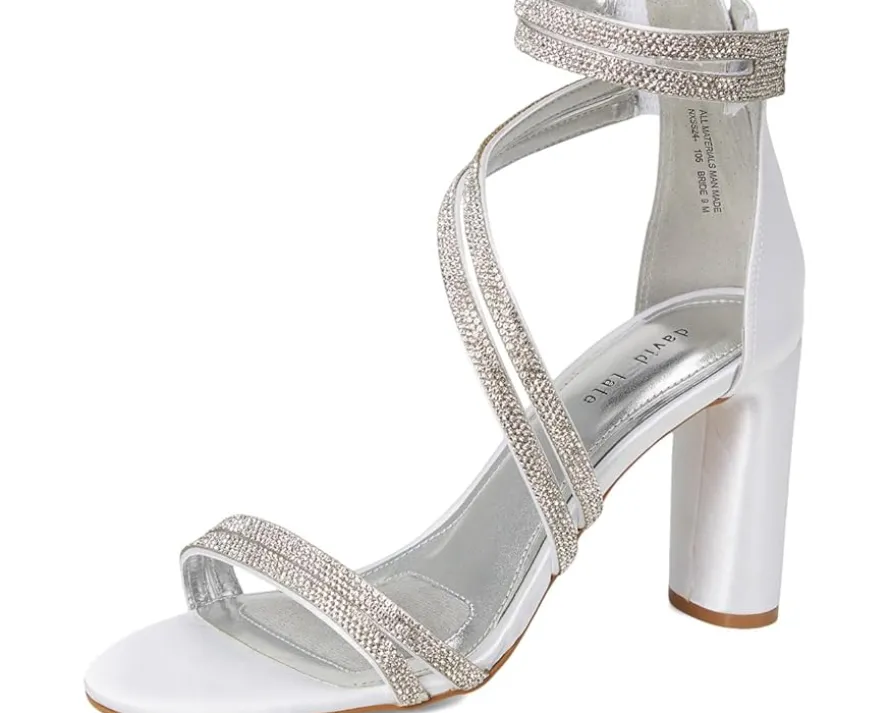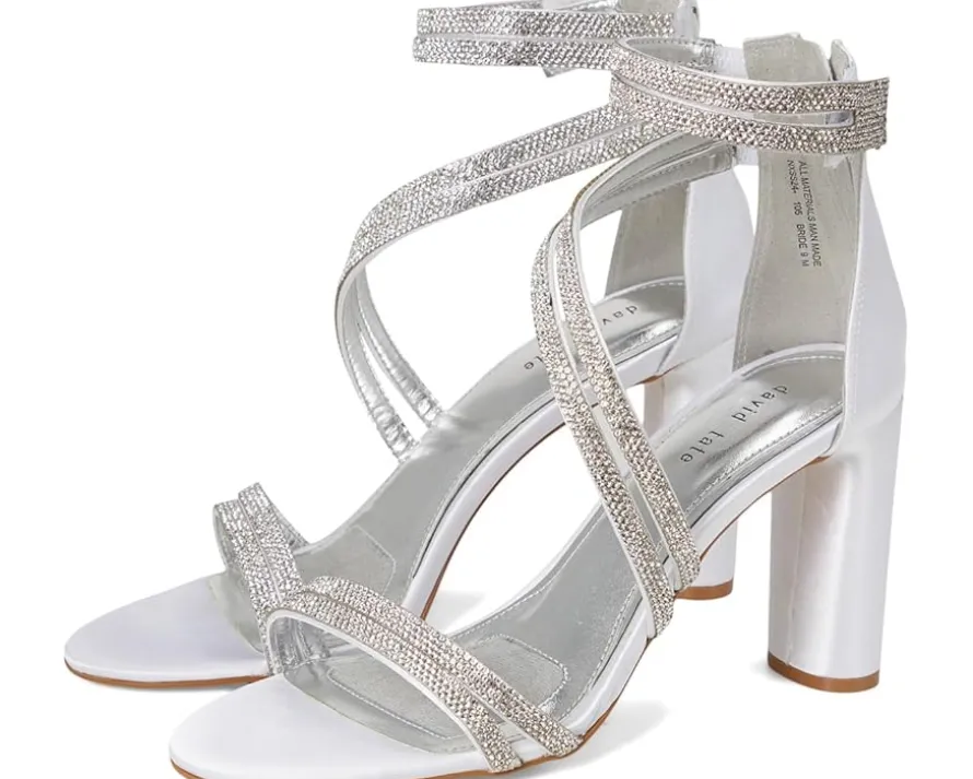 - Strut with marvelous flair wearing the shimmery David Tate® Bride Sandals. The block heel footwear features sparkling rhinestones on the upper with zippered closure on the backstrap.