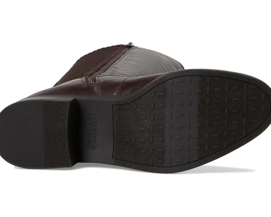 - Sleek and comfortable, the LifeStride® Brighton tall boots with modern design and built-in stretch are a go-to. Crafted with a faux leather upper, it features a rounded toe, zippered side closure, and a decorative ankle strap with metallic ring accent for a touch of edge. The stretch knit back panel ensures a flexible fit, while Soft System® comfort technology delivers all-day cushioning, support, and flexibility.