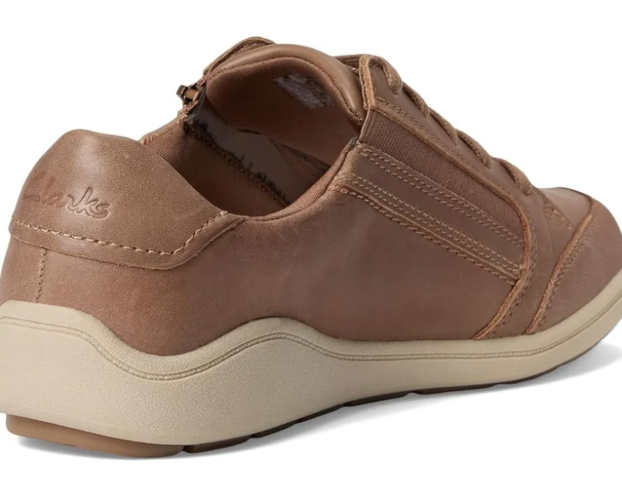 - A sporty evolution of Clarks® Collection Caroline family, Bryianne Bayla is prepped for laid-back everyday wear. Crafted from a soft leather upper, this simple yet timeless silhouette features a trendy, athletic-inspired TPR outsole design for ultimate underfoot traction and a plush Ultimate Comfort PU foam footbed for all-day support & ease. Laces give an authentic look and personalised fit, while the metal side zip combines with elastic gore panel to provide easy foot entry.