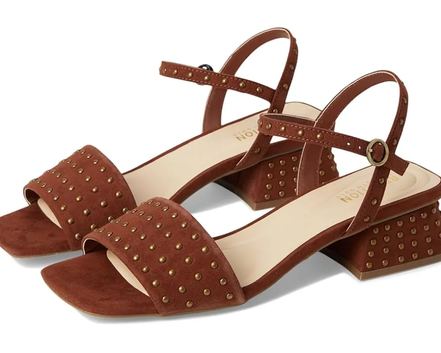 - Add a touch of glitz and glam to your warm-weather wardrobe choosing the Kenneth Cole Reaction® Buena Studs sandals! These stylish sandals feature microsuede upper, faux suede lining, and faux leather insole for a luxe feel. The allover stud detail adds a trendy touch, while the comfortable block heel and buckle entrance ensure a secure fit.