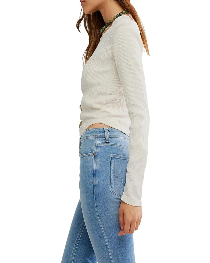 - Show off your refined taste in fashion wearing the Free People™ Butterfly Cuff Top. The pull-on style top features a boat neckline with exquisite lace detailing, long sleeves with butterfly cuffs, and a slightly curved hem.