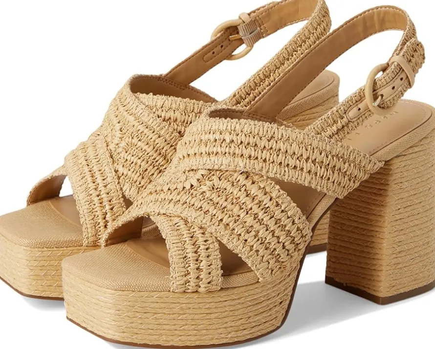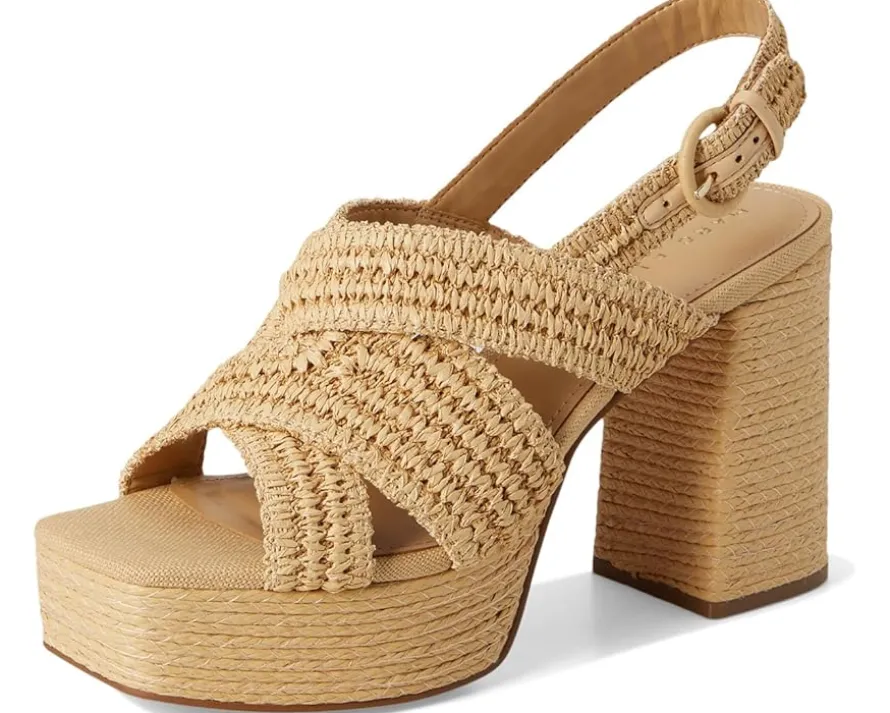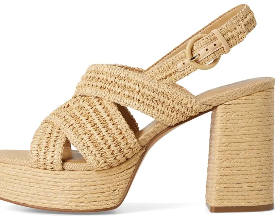 - Impress everyone with your refined style by pairing outfits with the Marc Fisher LTD™ Caddy Sandals. The open square-toe sandals feature a high block heel, adjustable ankle strap, and stylish woven detailing. These are crafted with a polyurethane upper and manmade lining.