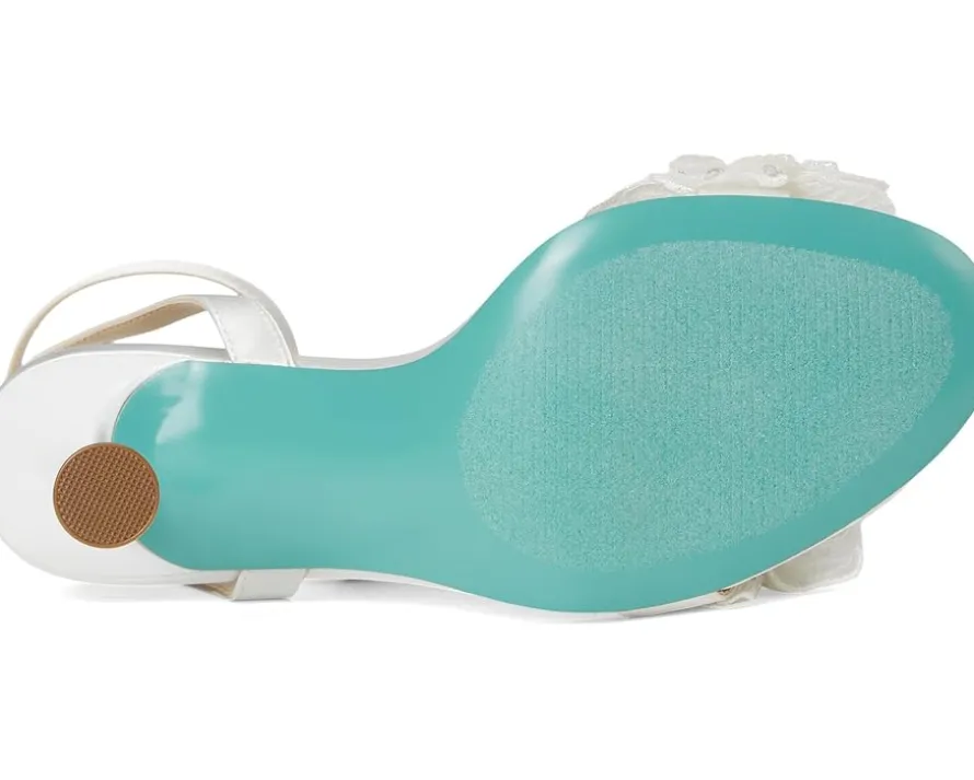 - Step out in floral fashion with the Blue™ by Betsey Johnson Cali sandals. The unique silhouette offers a timeless, stylish look with fun floral appliques. These heeled sandals are made of a rubber insole and polyester lining. The polyurethane upper features floral details and an adjustable ankle strap. From the office to the dance floor, you’ll have a look that’s sure to blossom wearing these floral sandals.