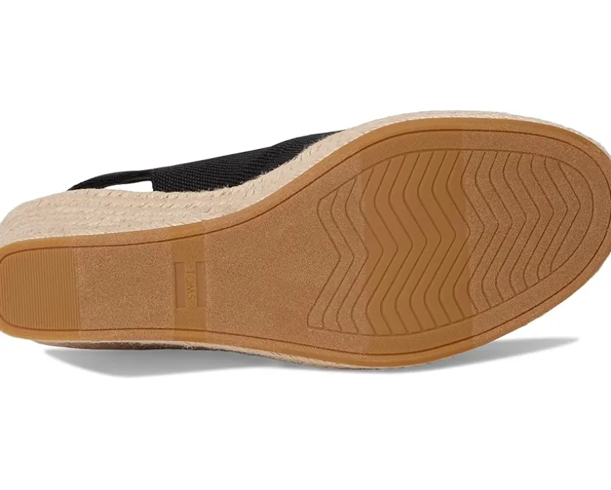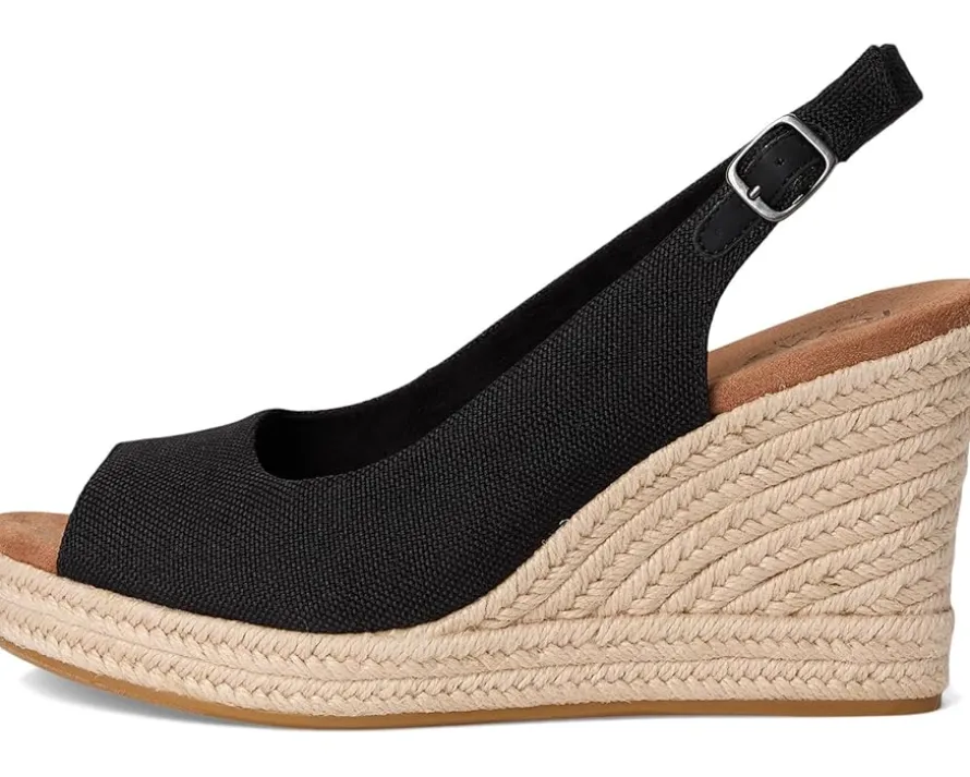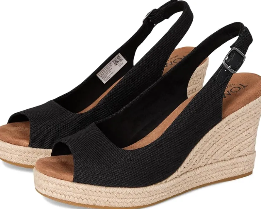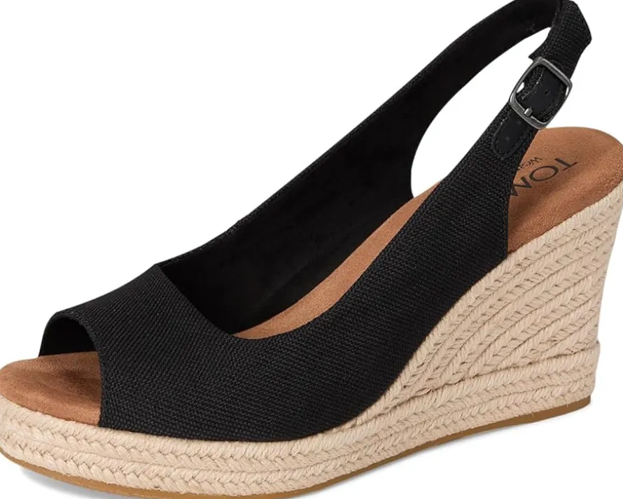 - The TOMS® Camilla sandals are pee-toe-shaped slingback espadrille wedges that are perfect to pair with your dresses and chic outfits. These heeled sandals are made of a fabric upper and lining. The custom CloudBound foam insole offers all-day comfort and support, while the adjustable buckle closure ensures a customized fit. Make your fashion statement wearing these wedge sandals.
