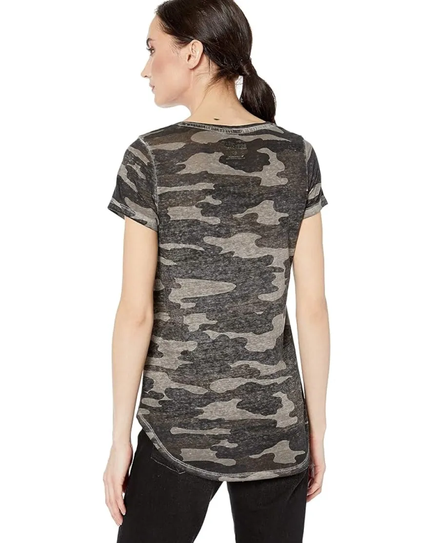 - Soften up your look with this stylish Lucky Brand® Camo Burnout Tee.