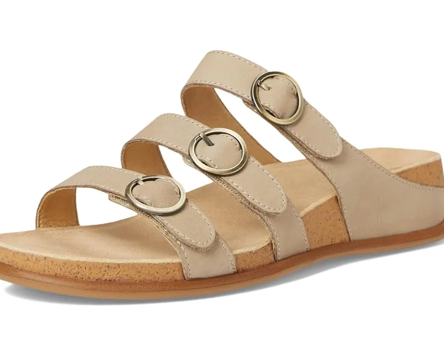 - The Dansko® Campbell is your new go-to for effortless elegance. Crafted with premium leather and a nubuck upper treated with 3M Scotchgard™, this sandal resists stains while exuding a soft, luxurious feel. The chrome-free suede sock lining ensures breathable comfort, while the cushioned PU footbed provides energy-returning support for all-day wear. Designed with a lightweight and flexible TR rubber outsole, every step feels natural and smooth. The three hook-and-loop closures offer customizable adjustability, ensuring a perfect fit for every foot. Featuring an open-toe design that’s equal parts chic and breezy, Dansko Campbell is your go-to sandal for versatility and comfort.