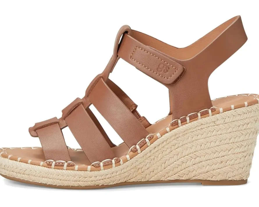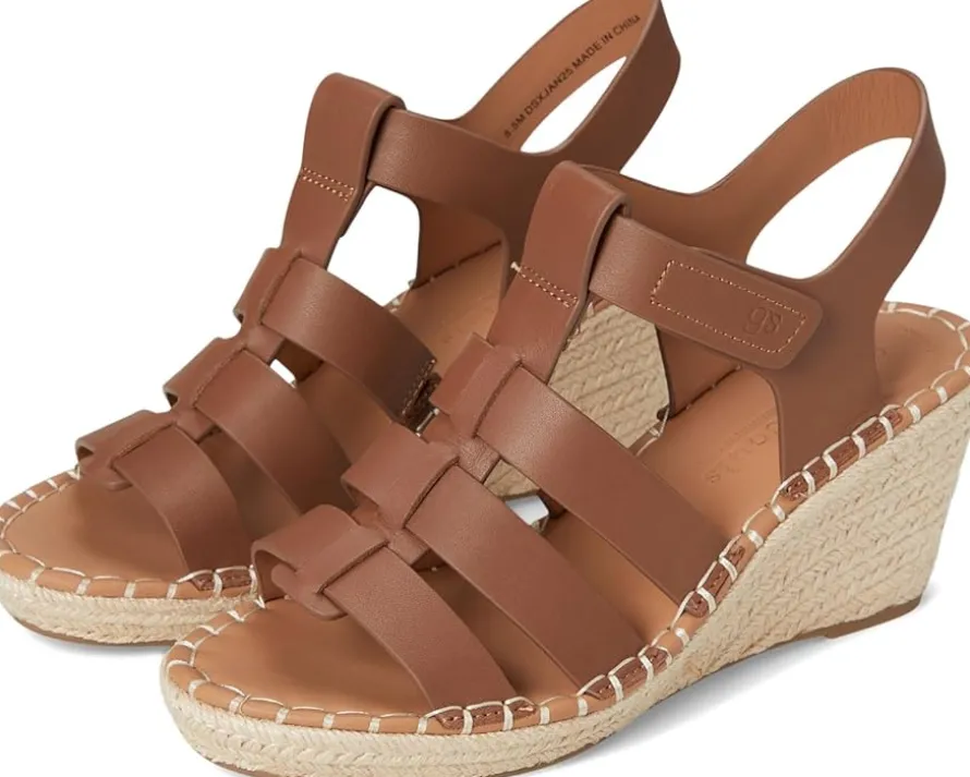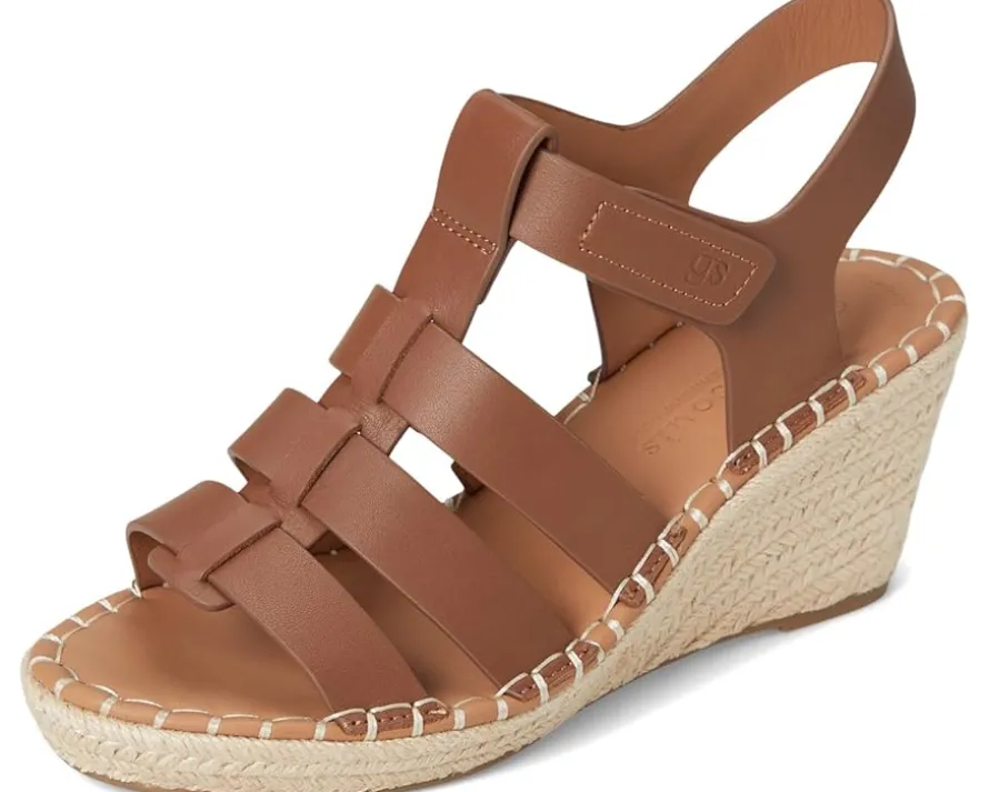 - The Gentle Souls® by Kenneth Cole Capelin sandals feature an espadrille wedge heel and a convenient hook-and-loop ankle strap closure for a secure fit. These sandals utilize a PORON® multi-layered cushioning system, providing exceptional support and comfort throughout the day. The breathable leather lining ensures your feet stay cool and comfortable.