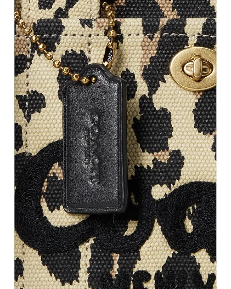 - Look divine and exquisitely pretty carrying the COACH™ Cargo Tote 26 with Leopard Print. Crafted from cotton lining, this bag features zippered closure, two top carry handles, detachable, adjustable crossbody strap, one exterior pocket with turn lock closure and snap pockets.