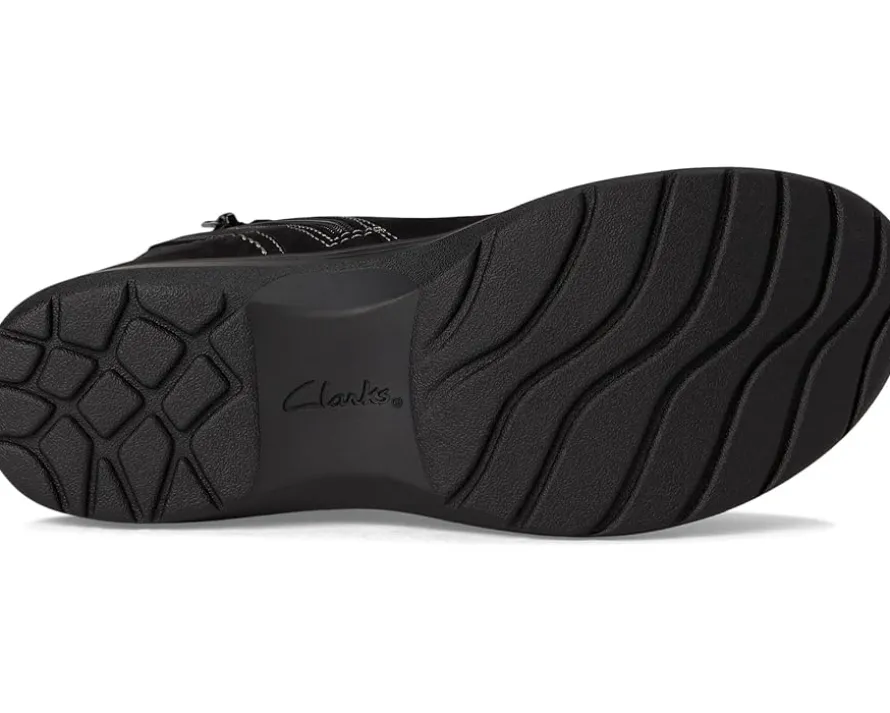 - Step out in style with the Clarks™ Carleigh Style boots. Made with luxurious leather upper and breathable mesh lining, these boots are as comfortable as they are fashionable. The rubber insole provides all-day cushioning, while the eye-catching detail and zippered side closure add a modern twist. Finished with round toes for a classic touch, these boots are versatile enough to pair with any outfit.