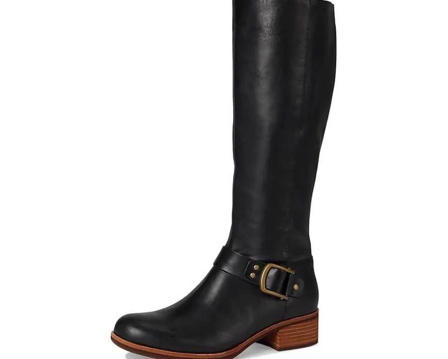 - Long on style and full of possibilities – in gorgeous hand-finished leather. The Kork-Ease™ Carli riding boot is burnished in all the right places to bring out her unique natural glow. Crafted from leather upper, soft fabric suede lining, and faux leather insole, this pair of boots features cushioned fabric suede covered footbed with extra foam for added comfort, round toe, block heel, buckle detailing, and calf high silhouette.