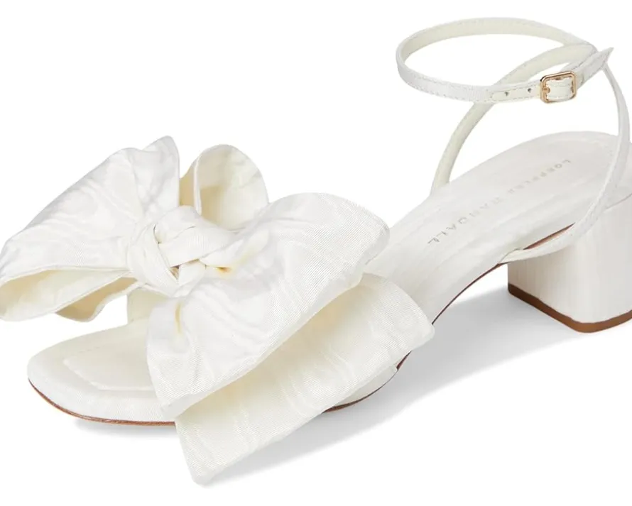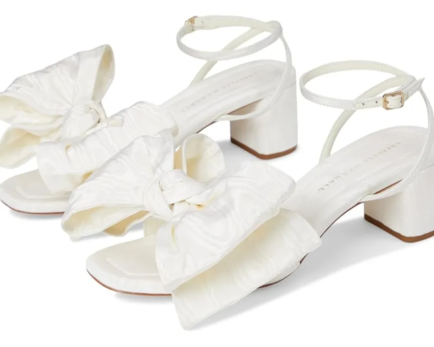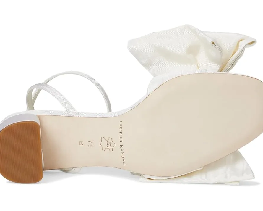 - Loeffler Randall® Carmen Mid Heel Bow Sandals offers just the right amount of comfort and style. The mid-heeled sandals are adorned with statement bow detail, open square toe design, and padded leather footbed with a gold stamped logo. The sandals feature sating upper, leather lining, and cotton insole.