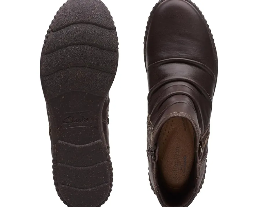 - The Clarks™ Caroline Orchid boots will be an instant favorite in your modern-casual collection. The stylish boots feature a leather upper with stitched details and ultimate comfort 5mm PU foam footbed that delivers lasting cushioning. The boots have an ankle-length silhouette and a round toe design.