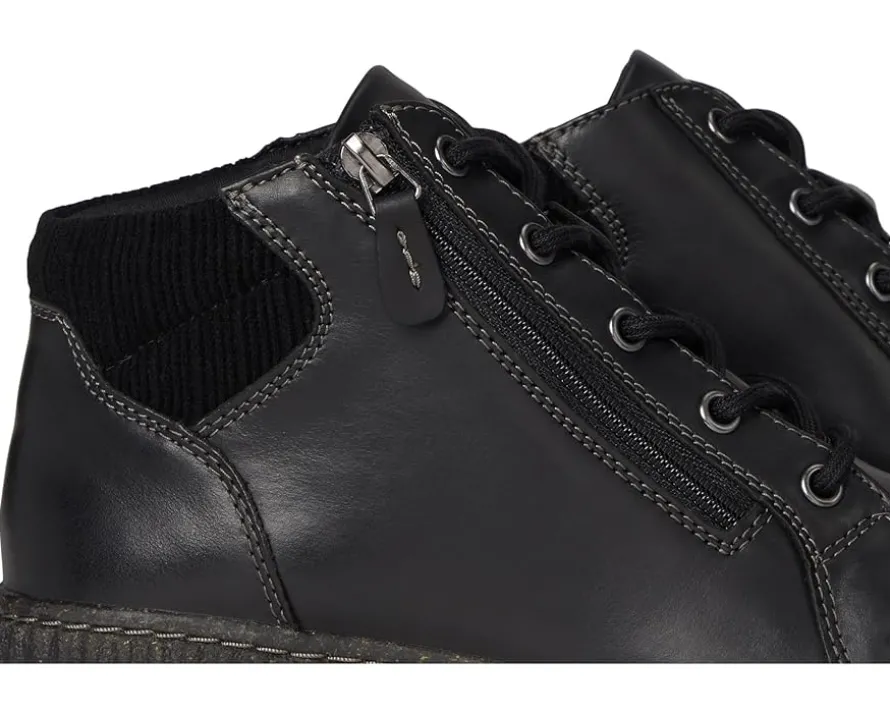 - Zippered side closure and lace-up panels.