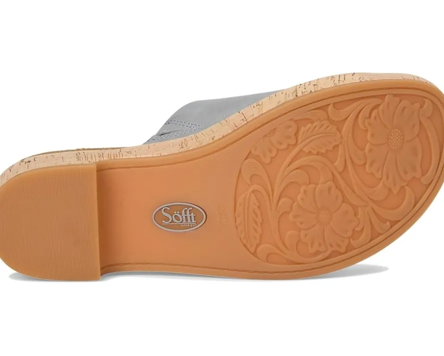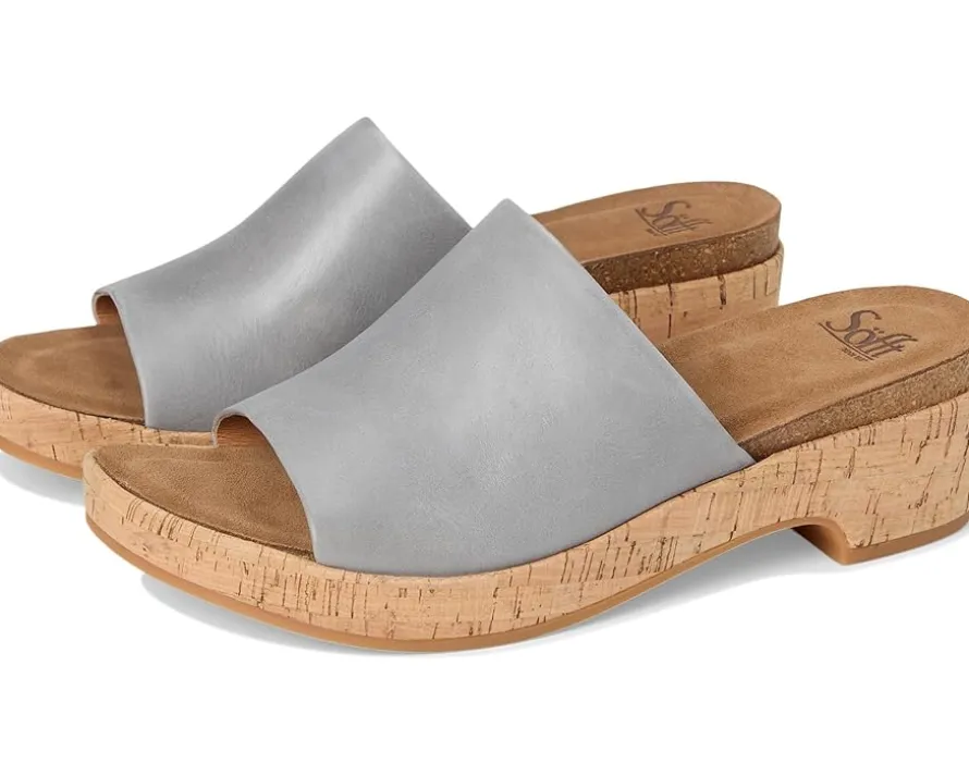 - Comfortable and chic, the Sofft® Cass Sandals let you enjoy every walk you take. The slip-on style heels are carfted with a soft leather upper, breathable leather lining, and a padded padded cork suede foam footbed. The open round toe shape and cork-wrapped platform heel adds a stunning detail to the look.
