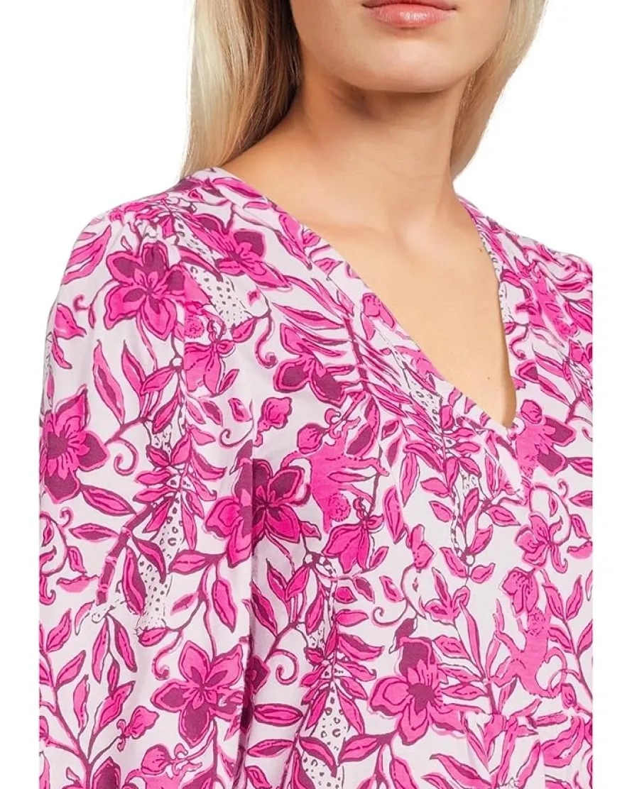 - Bloom into effortless elegance wearing the Lilly Pulitzer® Cass Dress! This above-the-knee floral masterpiece is designed for a breezy, stylish look with an easy fit that flatters every figure. Its chic V-neckline and front yoke detail add a touch of sophistication, while quarter blouson sleeves with cuffs offer a hint of playful charm. Perfect for quick style on-the-go, the pull-on design makes it as practical as it is stunning.