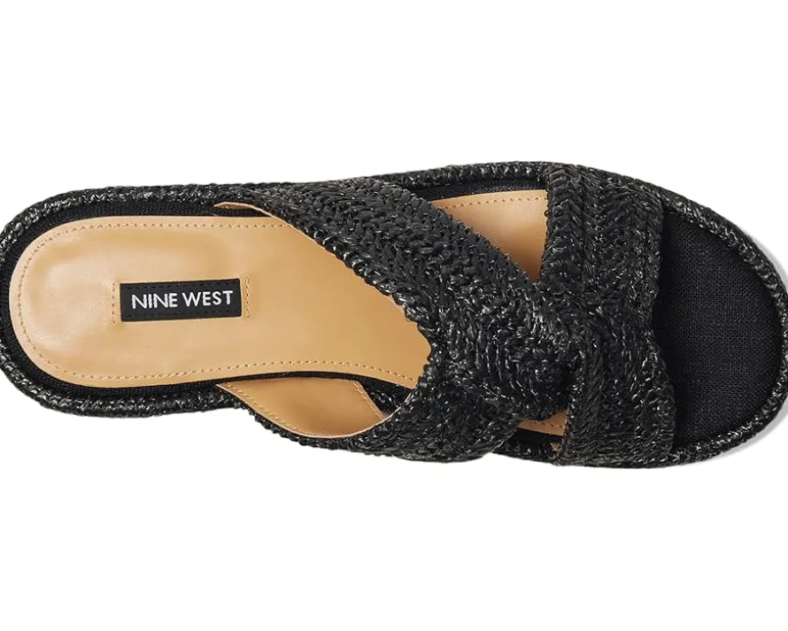 - Step out in style wearing the Nine West® Cerry platform sandals. The slip-on footwear features woven detailing and high wedge heels.