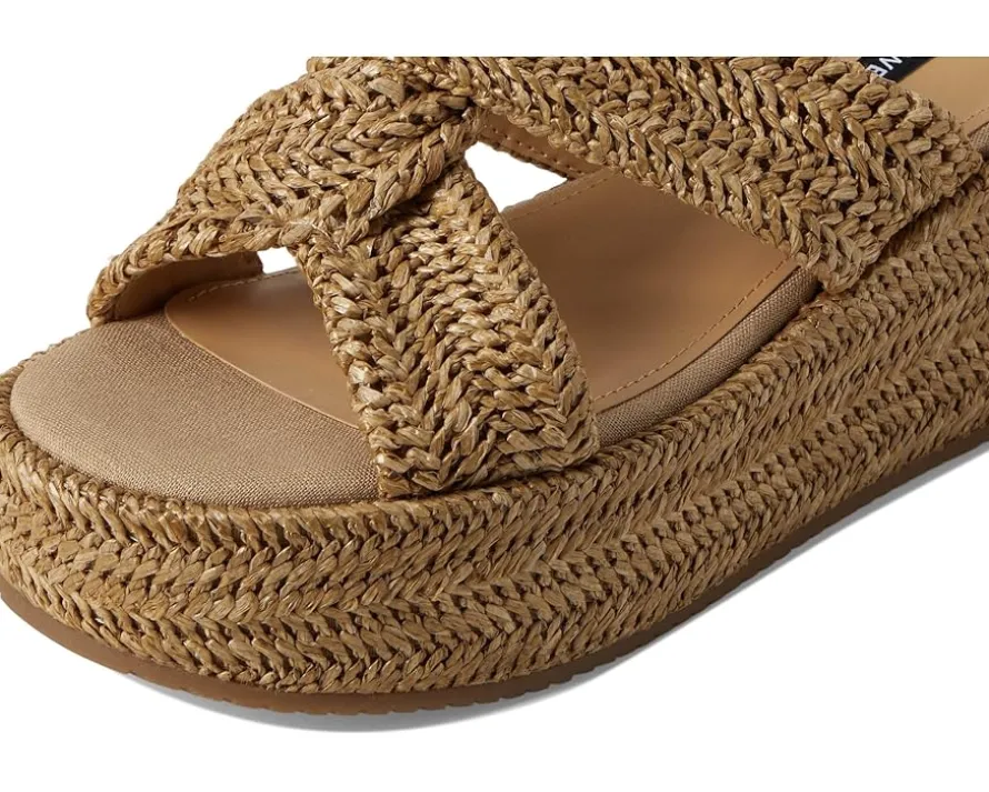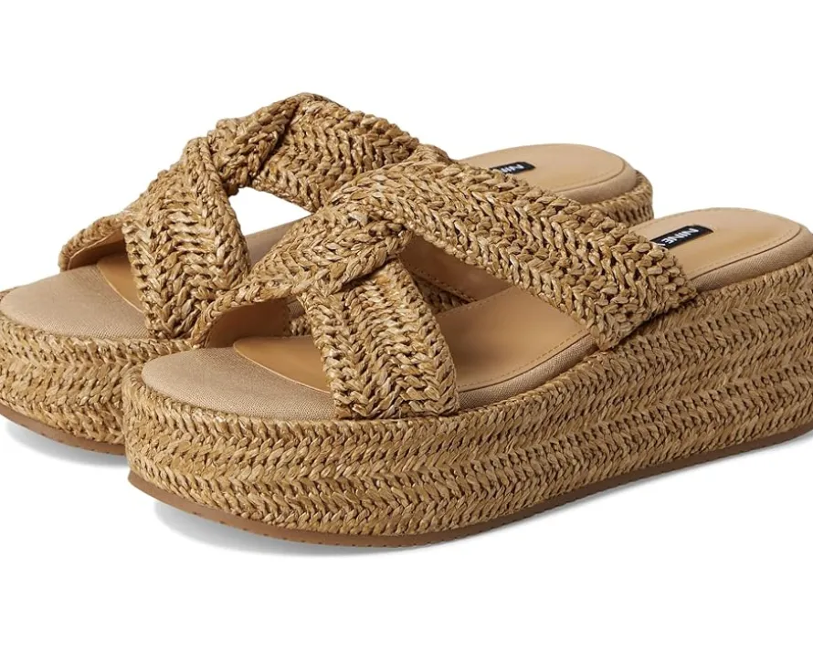 - Step out in style wearing the Nine West® Cerry platform sandals. The slip-on footwear features woven detailing and high wedge heels.