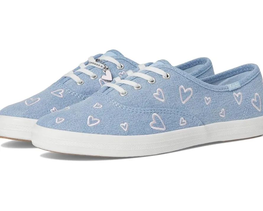 - Add a fun-loving vibe to your casual style wearing Keds® Champion Seasonal Sneakers. The low-top, lace-up sneakers are designed with a denim upper adorned with embroidered heart details and heart shoelace charm. These feature a polyester lining and an ethylene vinyl acetate insole.