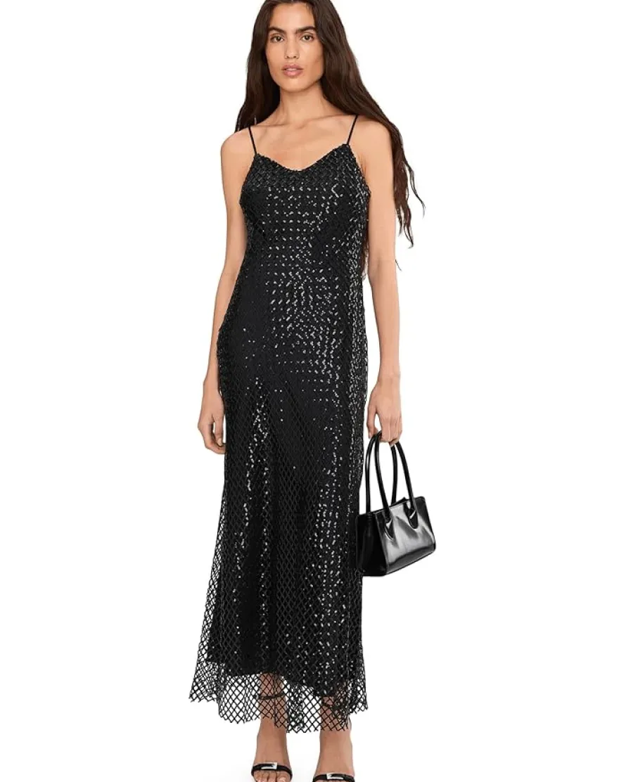 - Get ready to dazzle donning the AllSaints™ Chantelle Dress. Boasting a chic V-neckline and sleeveless cut, this dress is perfect for showing off your shoulders. The adjustable straps ensure a perfect fit every time. The sequined mesh overlay adds a touch of sparkle, while the A-line silhouette creates a flattering shape. Plus, the double-layer design adds extra volume and movement to your look.
