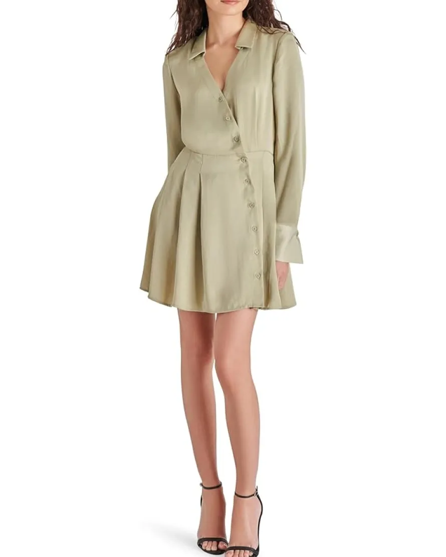 - Feel elegant and glamorous wearing the Steve Madden® Charlee Dress. This mini-length shirtdress features long sleeves, collared neckline, buttoned front closure, and pleat detailing.