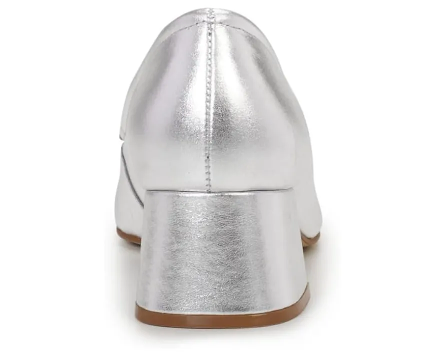 - A gored bow tie-up detail perfectly enhances the look of Vince Camuto® Charley Pumps. The ballet-inspired footwear features leather upper construction with a gleaming metallic finish and low-top, closed square toe silhouette.