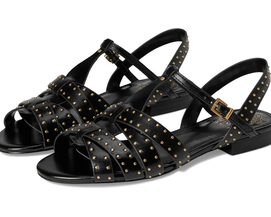 - Add a feminine touch to your look with the Vince Camuto® Chaya Studded Gladiator Flat Sandals. The pair is delicately detailed with pinhead studs for a subtle yet stylish flair. The slingback strap and buckle closure on the instep strap ensure a secure fit, while the stacked block heel gives you the perfect amount of lift without sacrificing comfort. Featuring a rounded toe and a padded sock, this sandal is flirty, versatile, and perfect for all ages.