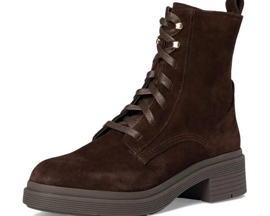 - The Cole Haan® Cherise Lace-up Lug Boots feature waterproof leather upper for protection against the elements. Inside, a fully padded leather sock lining provides enhanced comfort. The midsole consists of an EVA wedge, measuring 65mm, offering elevated style and cushioning. For stability and durability, the shoe is equipped with a lugged outsole that includes rubber pods for improved traction. Systematic layers of proprietary cushioning compounds softly pad each step.