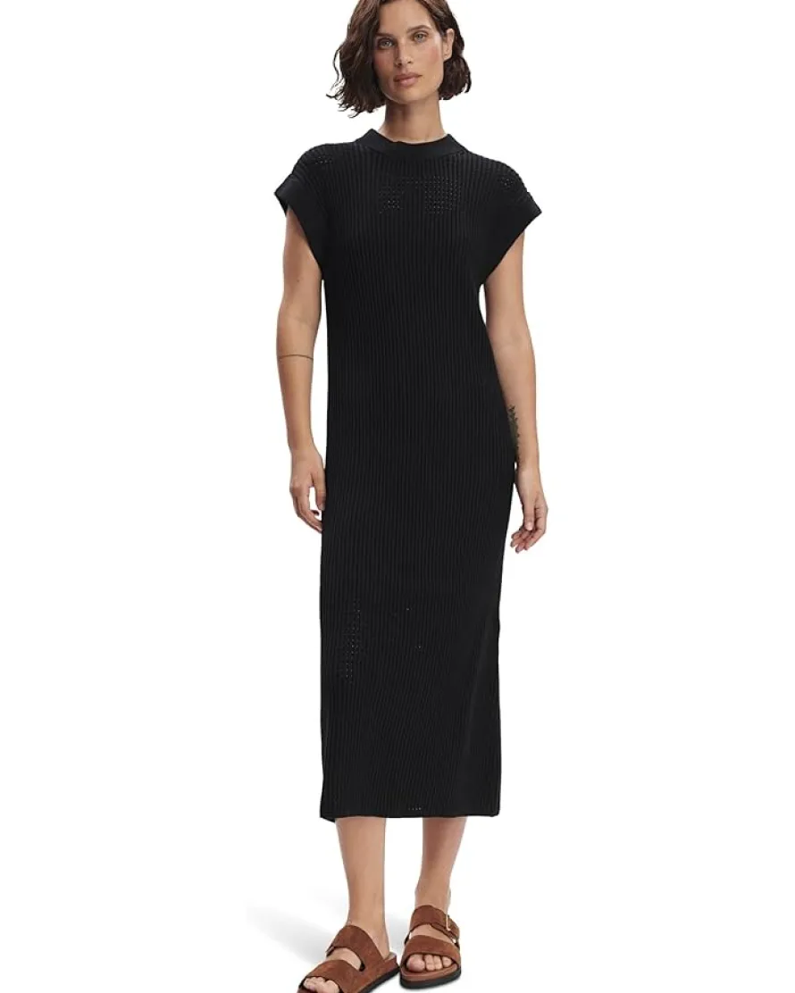 - Knitted in a fine cotton rib with pointelle mesh detailing, this midi-length dress offers a relaxed fit for all-day comfort. With its classic crew neck and dropped shoulders, it’s the ideal choice for effortless summer chic.