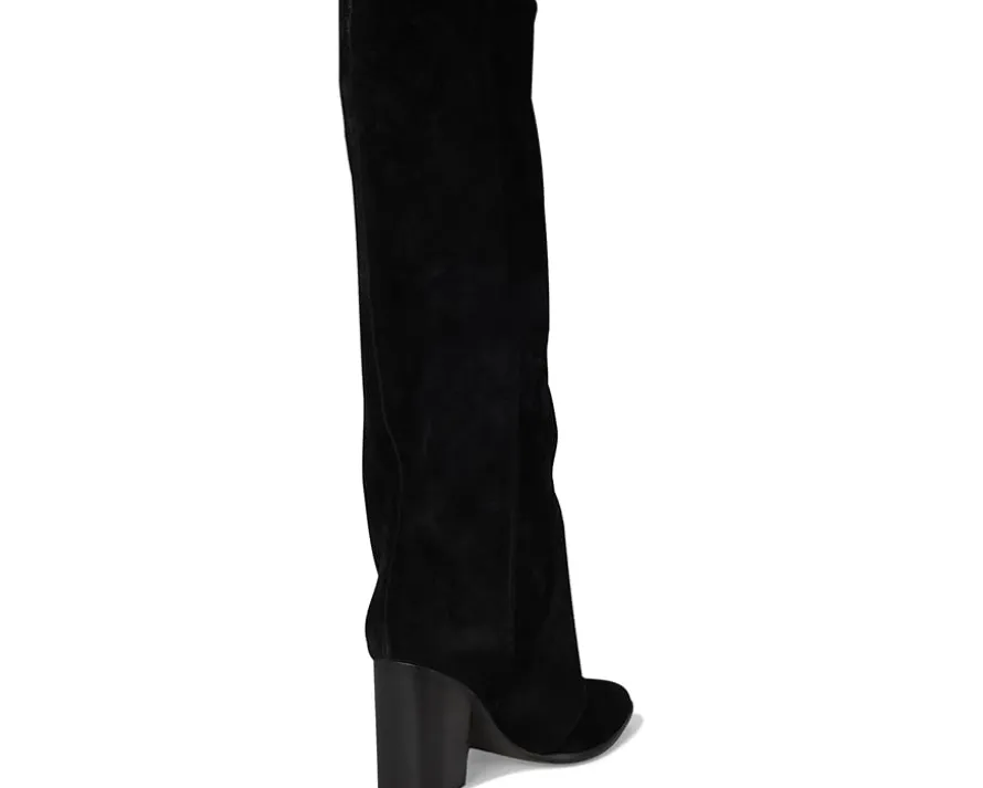 - Stride confidently through streets wearing the Nine West® Chicke. Crafted from suede upper, and man-made lining, this pair of tall boots features pointed toe, pull-on closure, and block heels. Their flattering silhouette offers all-day comfort and unbeatable flair.