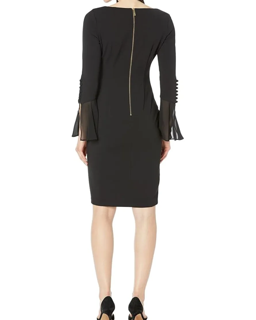 - Make your party look more classy wearing Calvin Klein® Chiffon Bell Sleeve Sheath Dress.