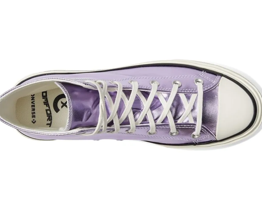 - Catch light (and looks) with every step in these extra-tall Converse® Chuck Taylor All Star Lift Double Stack Metallic sneakers. Their metallic canvas upper for an elevated look and feel, while the OrthoLite cushioning helps provide optimal comfort. These platform shoes are made of an EVA insole and cotton lining. The shiny, metallic finish brings a party-ready vibe. Styled with an iconic Chuck Taylor ankle patch and All Star license plate, these lace-up sneakers feature a double-stacked platform that ups the height.