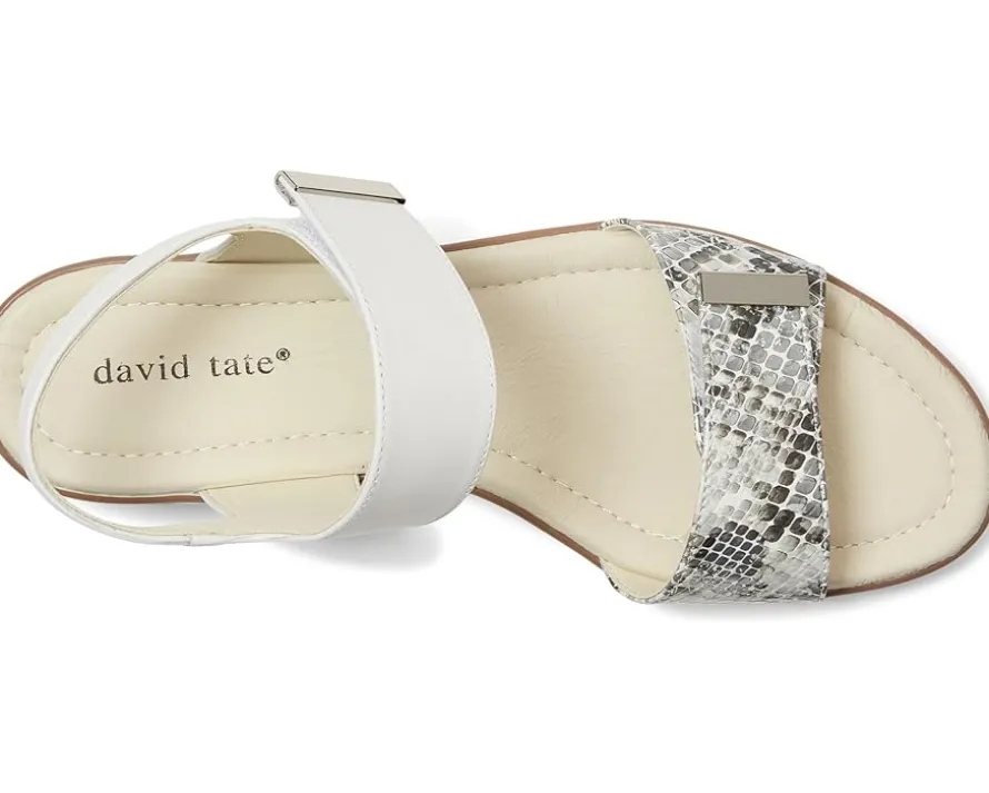 - Introducing the sleek and stylish David Tate® Civic sandals. This exquisite footwear showcases a contemporary aesthetic with its dual hook-and-loop straps for easy adjustability, elegant metal-tip embellishments for a touch of sophistication, and eye-catching animal-print leather upper that exudes timeless charm. These heeled sandals are made of a memory foam insole and leather lining. Step into luxury and comfort with these leather sandals.