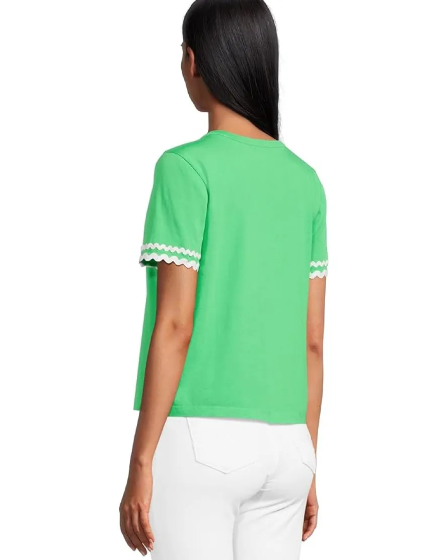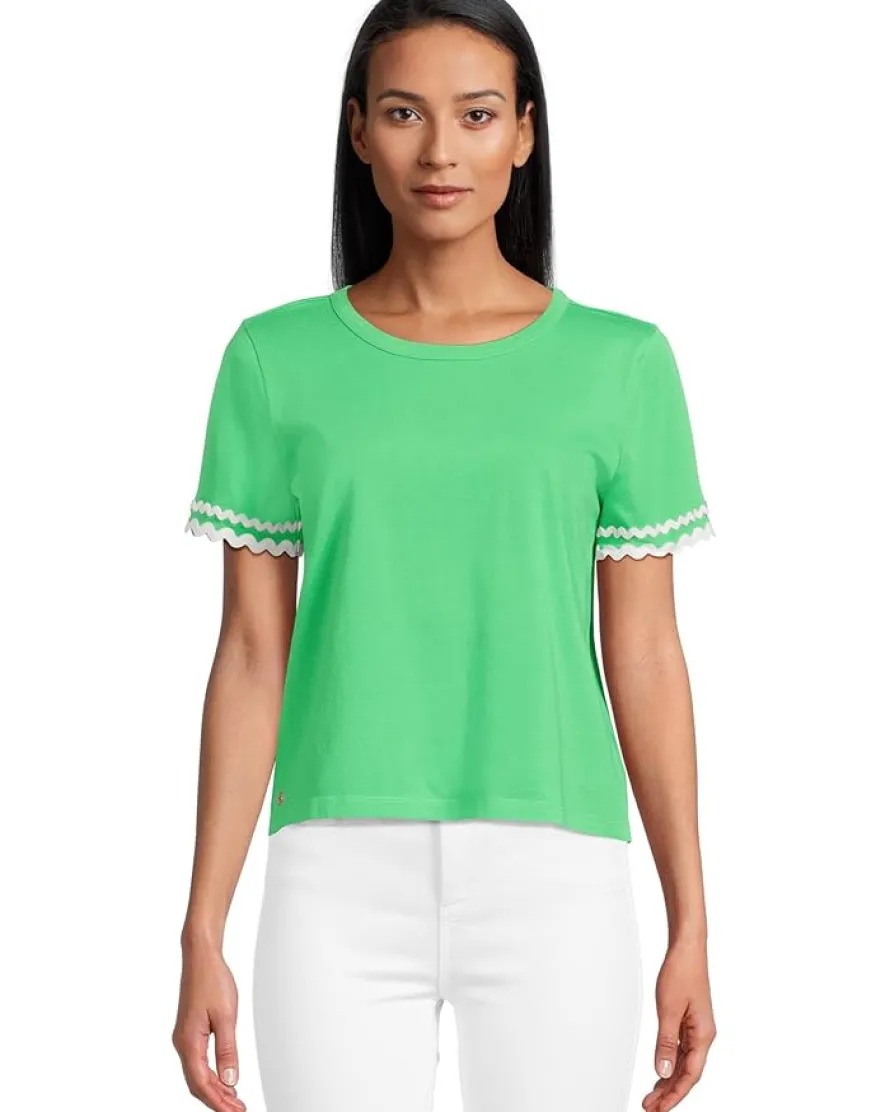 - Designed for ultimate comfort, the Lilly Pulitzer® Clairmont Trimmed Knit To is straight fit top with banded crew neckline and short sleeves. It features ric rac trimmed sleeves, branded hardware, regular fit, pull-on style, and straight hem.