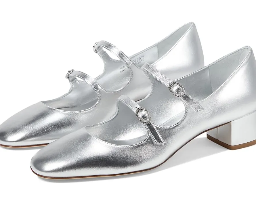 - Make a lasting impression donning Stuart Weitzman® Claris Mj 35 Pump! Featuring a chic round toe and trendy dual buckle closure, this shoe combines style with supreme comfort. The mestizo leather lining and EVA insole provide a luxurious feel, while the patent PU-coated calf leather upper ensures durability and shine. The cow leather outsole offers unmatched stability.
