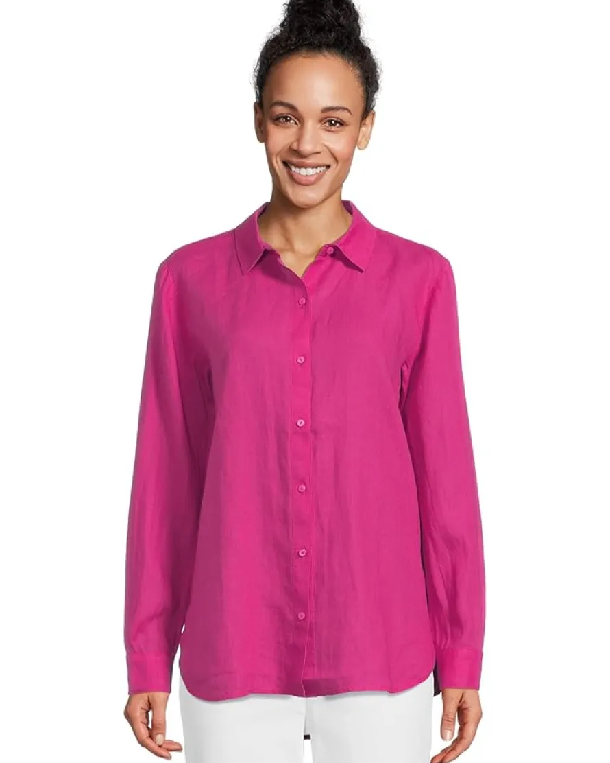 - Create a polished look with this light and airy EILEEN FISHER® Classic Collar Long Shirt. Featuring a fold-over collar, long sleeves with button closure cuffs, front button closure, and a shirttail hemline.