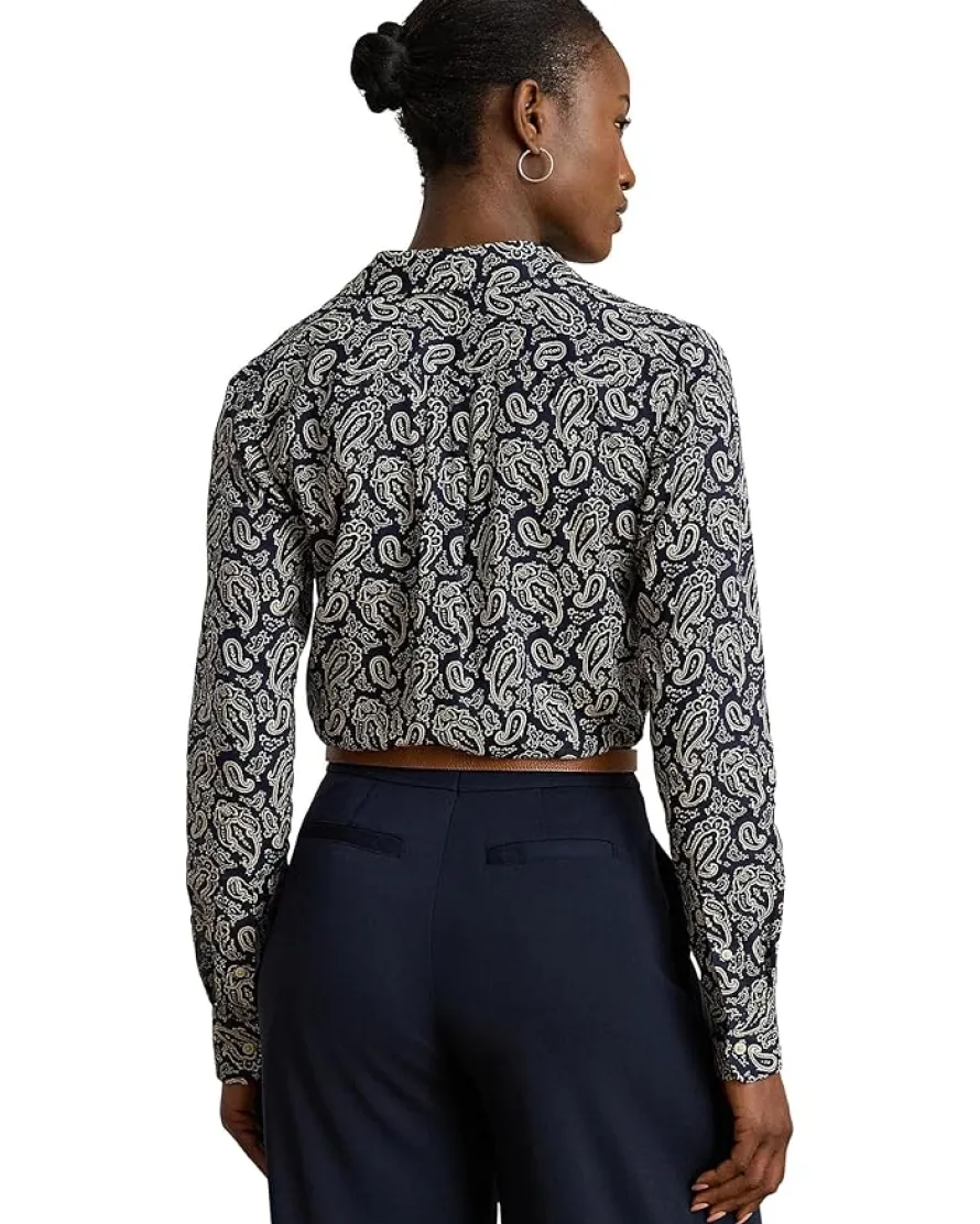 - Crafted with lightweight cotton voile for an airy look and feel, the Lauren Ralph Lauren® Classic Fit Paisley Cotton Voile Shirt depicts an enchanting paisley pattern in hues of blue and cream. It is designed with a buttoned front placket with buttons custom-developed with a “Lauren Ralph Lauren” logo. This patterned shirt is styled with long sleeves, buttoned barrel cuffs, a box-pleated back yoke, a point collar, and a shirttail hem.