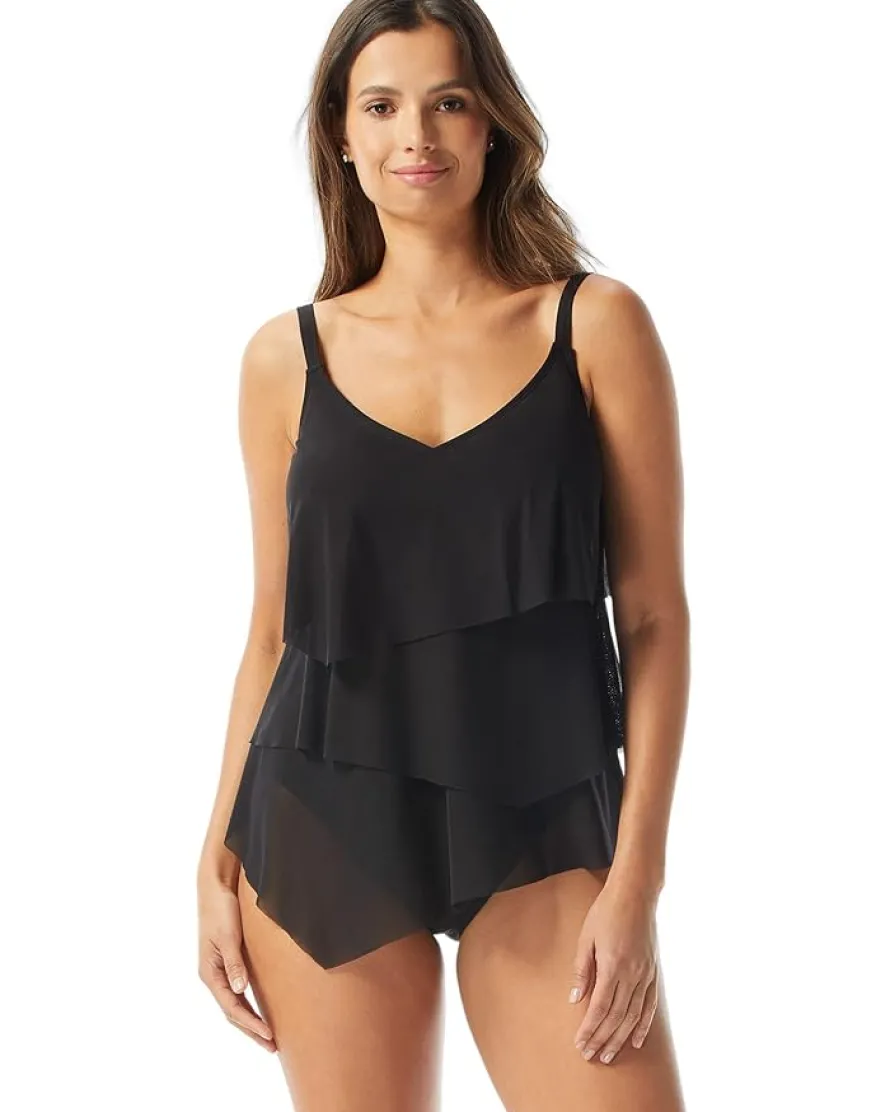 - Look sizzling at your next pool party wearing the stylish COCO REEF™ Classic Solid Bra Sized Tiered Mesh Tankini.