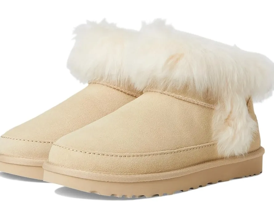 - The Classic Ultra Mini is one the most coveted Classics, and we’ve made it even more cozy with the Classic Ultra Mini Chalet. Featuring the same lower shaft you love about the original, this one is trimmed in fluffy sheepskin for a full mountain town “moment.” It’s crafted with rich suede set atop a lightweight sugarcane ethylene vinyl acetate outsole, and inside you’ll be wrapped up in the warmth of the soft UGGplush™ lining from upcycled wool.