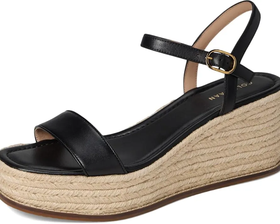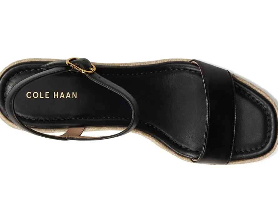 - The Cole Haan® Cloudfeel Keeton Espadrille Flatforms are one-band Flatform espadrille sandals that are perfect to pair with your different outfits and styles. The leather upper features an ankle strap with a functional buckle closure and an extended welt with a welt stitch. These heeled sandals are crafted with a single-density cushioned footbed, EVA insole, and polyester lining.