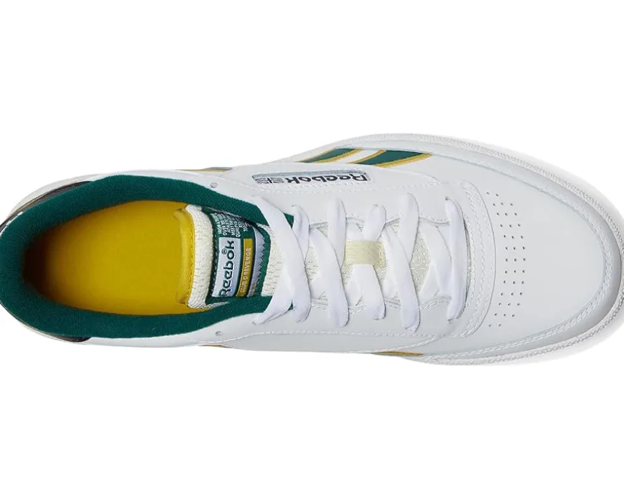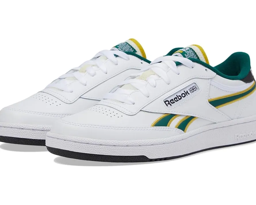 - Step up your fashion game with these timeless Reebok® Lifestyle Club C Revenge sneakers that never go out of style. The low-top sneakers come with a full leather upper with popped stripe piping & shadow heel branding, leather lining, and cushioned rubber insole. The lace-up closure on the sneakers allows easy adjustability and the signature Reebok® branding on the side panel gives them a statement touch.