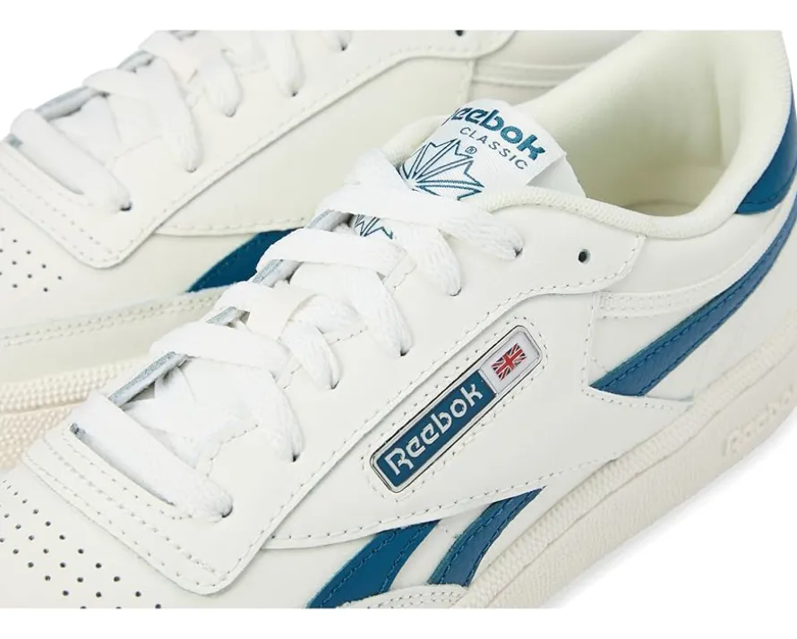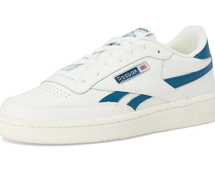 - Slight off-colored collar binding for added “sun baked” aesthetic, the Reebok® Lifestyle Club C Revenge looks classy. Crafted from leather upper, lining, and rubber insole, this pair of shoes features round toe, lace-up closure, iced cup sole bottom, and brand detailing on the sides, tingue and footbed.