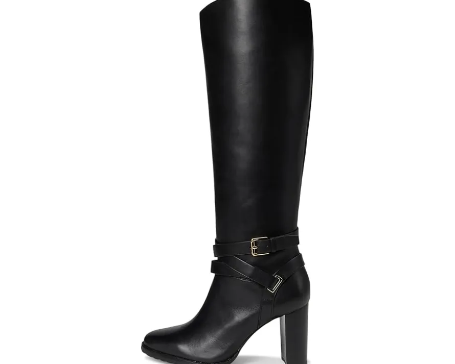 - Crafted from sumptuous burnished leather, the LAUREN Ralph Lauren® Collins Burnished Leather Tall Boots Heel are elevated by equestrian-inspired styling details, including a wraparound crisscross ankle strap. A stacked leather heel affords added sophistication while doubling as a practical design element, which ensures comfortable all-day wear.
