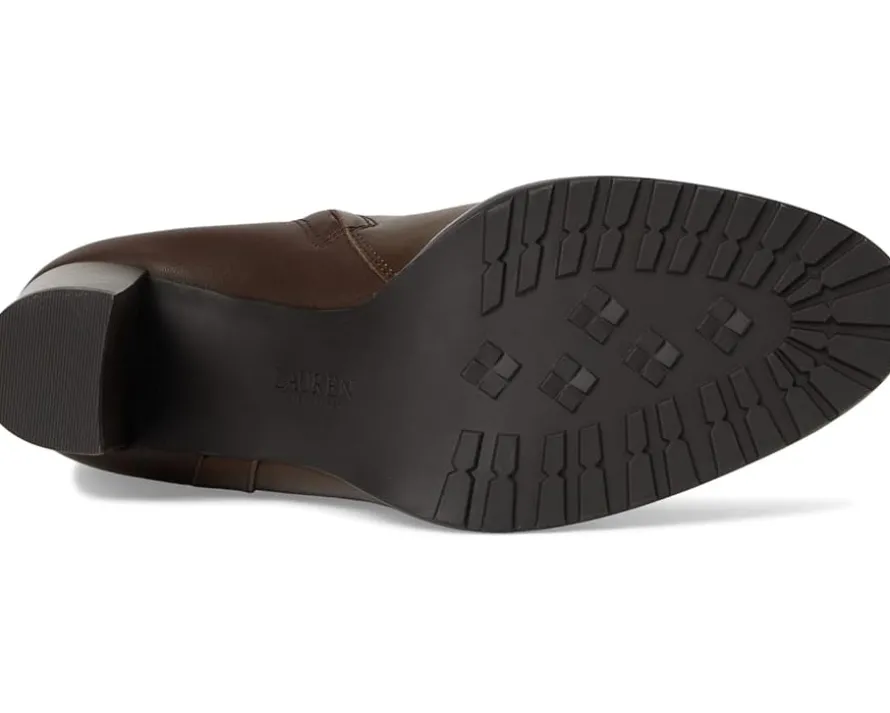 - Crafted with luxuriously smooth calfskin leather, the LAUREN Ralph Lauren® Collins Calfskin Tall Boots Heel are elevated by equestrian-inspired styling details, including a wraparound crisscross ankle strap. A stacked leather heel affords added sophistication while doubling as a practical design element that ensures comfortable all-day wear.
