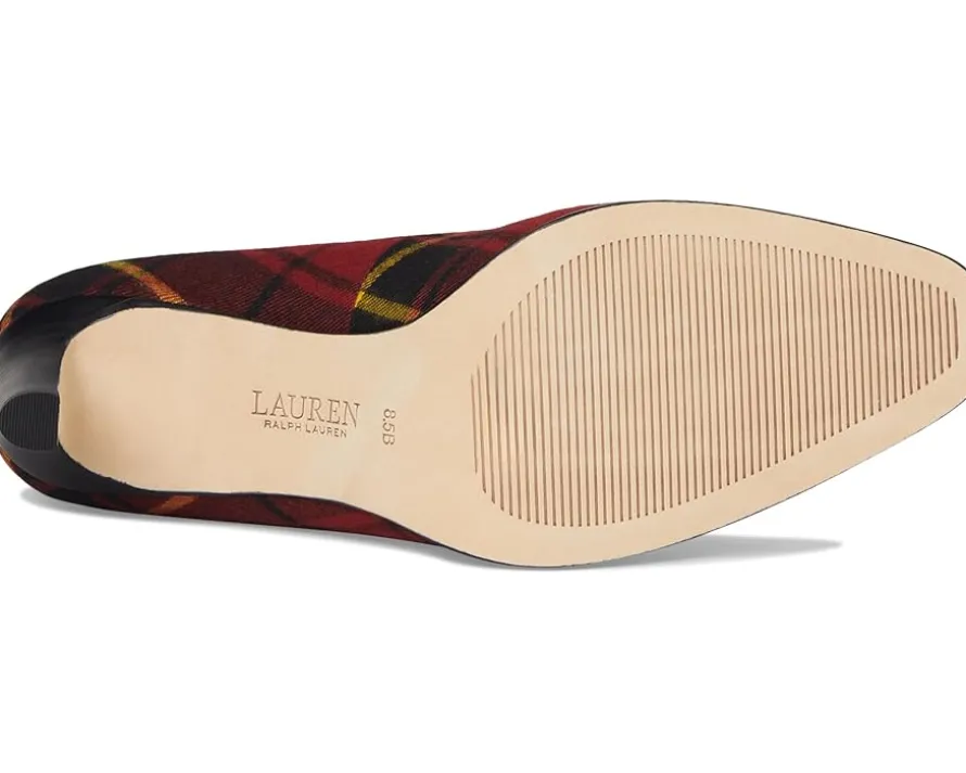 - Embroidered with Lauren’s signature script logo at the vamp, the Lauren Ralph Lauren® Corah Pumps are rendered in velvet for a soft hand and beautiful sheen. These heeled pumps are made of a padded foam insole and leather lining. The leather upper of these pumps is styled with an allover pattern.
