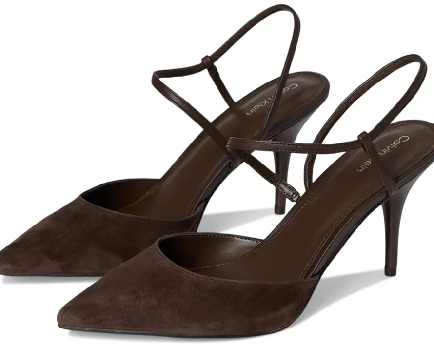 - Step up your look in the Calvin Klein® Cordera dress pumps featuring high stiletto heels, a strappy silhouette, and a pointed toe shape. These heeled pumps are made of a polyurethane upper, cushioned insole, and man-made lining. These pump shoes will never go out of style.
