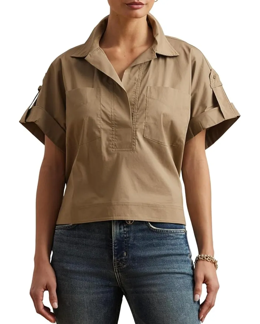 - Look bold and baggy wearing the Lauren Ralph Lauren® Cotton Blend Short Sleeve Camp Shirt. Designed with a roomy, collared neckline, relaxed silhouette and short roll-tab sleeves, this camp shirt is an effortless addition to your wardrobe. Detailed with patch pockets at the chest, it’s crafted with a lightweight stretch-cotton blend for a silky hand feel.