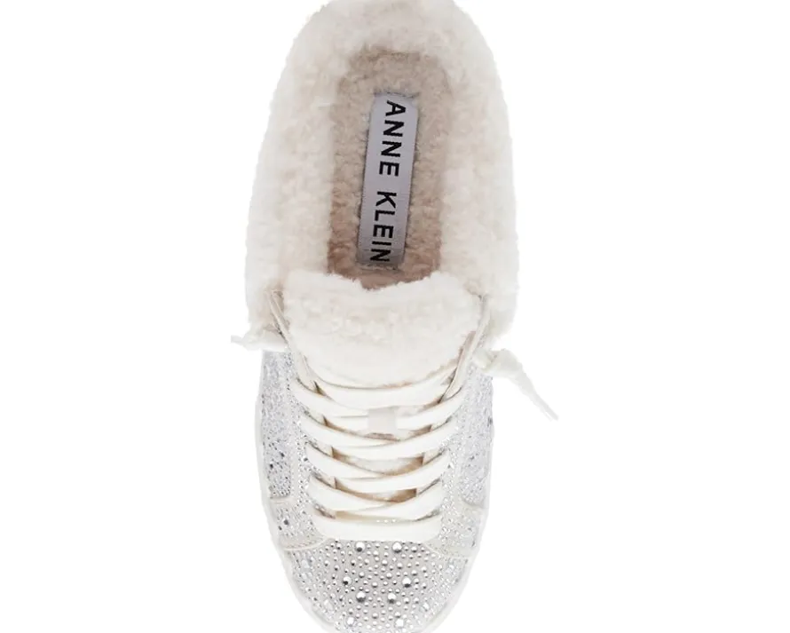 - Take radiant and refined steps in these Anne Klein® Courage-C Sneakers. The slip-on footwear features leather upper with allover crystal embellishments, cozy fleece lining, and cushioned footbed ensuring your feet are pampered.