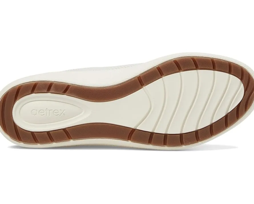 - Featuring perforations along the lateral side, the Aetrex® Courtney low-top sneaker has breathable leather upper construction to keep your feet comfy throughout. The Aetrex® Orthotic System provides arch support that helps stabilize and align the feet, and assists in relieving common foot pain.