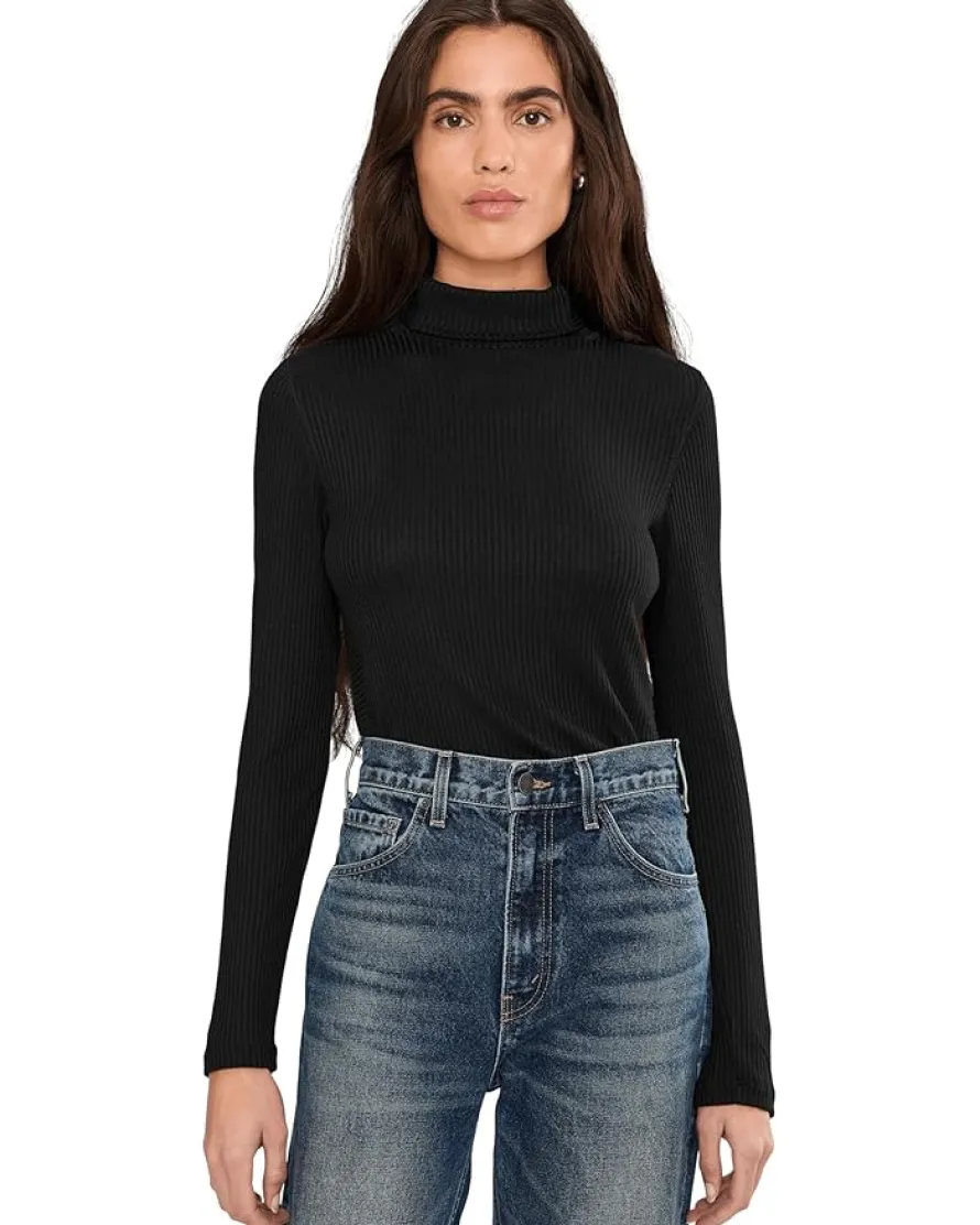 - Find the perfect layering essential in the Madewell® Coverstitch Turtleneck Drapey Rayon Rib top. Designed in a pull-on style, this top offers a turtleneck with long sleeves and a straight hemline. Pair it with your favorite denim or pants for effortless styling.