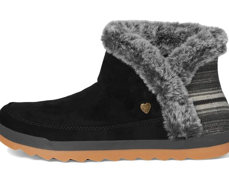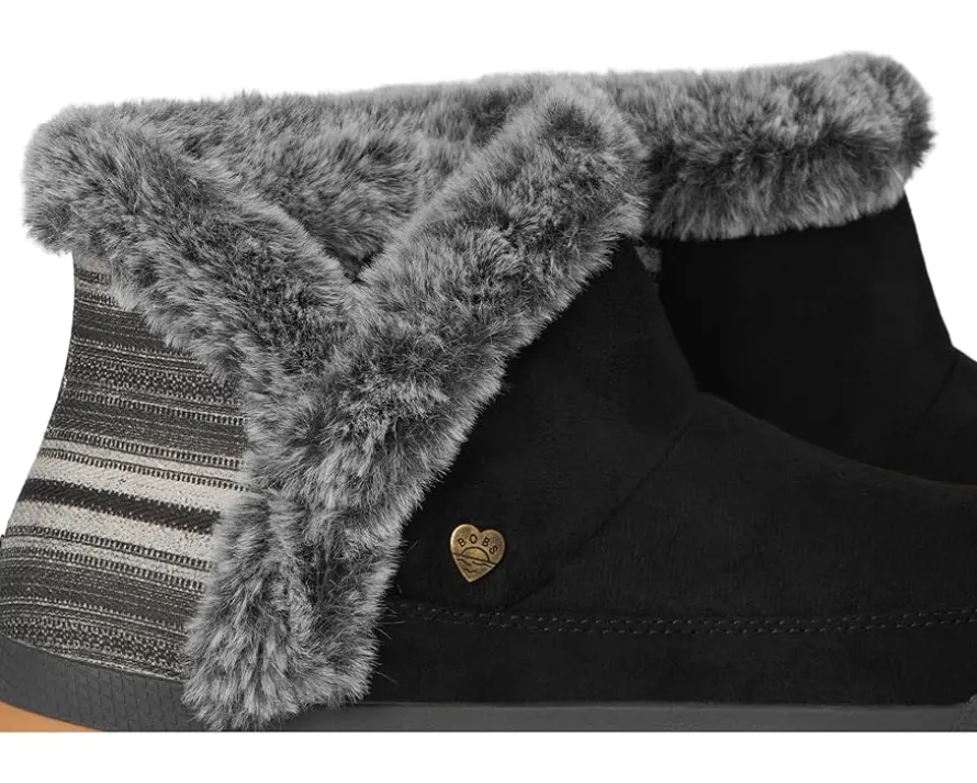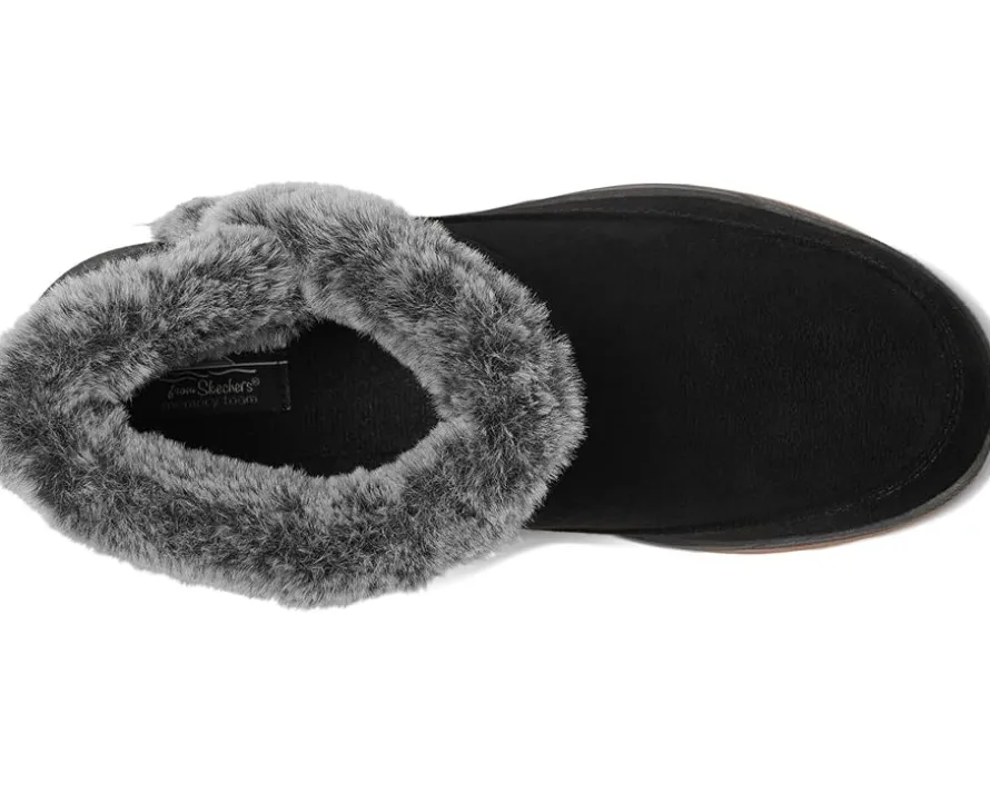 - Lightweight and cushioned, the BOBS from SKECHERS® Cozy Chill – Comfy Break slippers keep your feet cozy and warm. The faux fur trim and lining and memory foam footbed of these cozy slippers make them comfortable to wear all day. These slipper booties are made of a faux suede upper that provides added comfort and durability. Crafted with 100% vegan materials, these slippers are ideal for both indoor and outdoor wear.